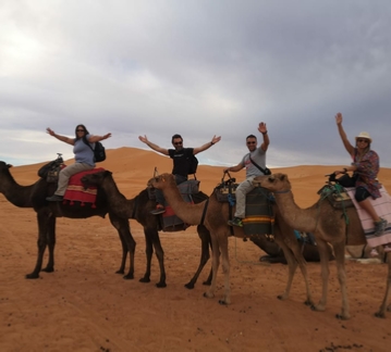 All hotel transfers , Local guides in Sahara , Transfers in A/C cars , Friendly drivers speaking your language , Overnight in desert camp , Dinners , breakfast, Camel ride, Berber music in the desert.